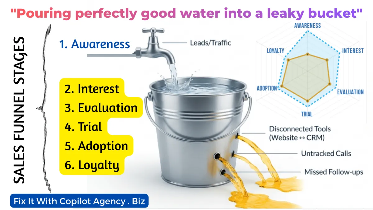 You're pouring perfectly good traffic into a system that's quietly leaking—missed follow-ups, disconnected tools, unclear trust signals, untracked calls.